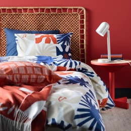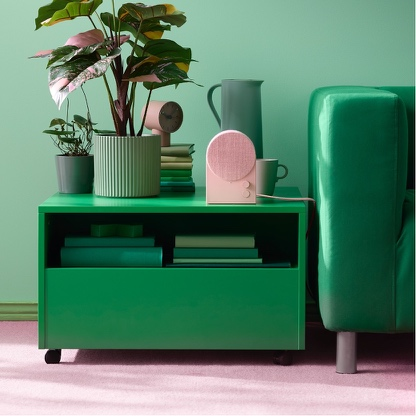 鲜艳色彩与醒目图案结合,把家变成一座缤纷的视觉游乐场。本季宜家新品大胆运用跳脱配色,带来令人眼前一亮的空间灵感。无论是绿色波浪纹设计的全新PORTLAKMÅLLA 伯洛莫拉 被套、绿粉撞色的GURLI 格尔利 垫套,还是轻巧多彩的 NATTBAD 内特巴德 蓝牙音箱,都能让家居空间瞬间活力满满。