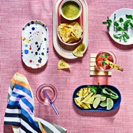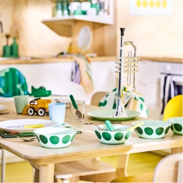 添置一套圆点图案的OFTAST 奥夫塔 碗具、清新浅绿色的NISSAFORS 耐斯弗思 推车或可爱青蛙主题的 MATA 玛塔 餐具4件套,不仅美观实用,更让备餐和清洁过程多了一份好心情。而在夜晚的欢聚时刻,全新粉色透明KLIPPLAX 克丽普拉 玻璃器皿和全新 RÖDSNULTRA 瑞德纳加 盘 三件套,为亲朋好友的聚会时光增添缤纷色彩与欢乐氛围。