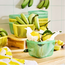 可以轻松装下水果蔬菜,或是储藏厨房用品。清新色调为日常生活增添欢乐。