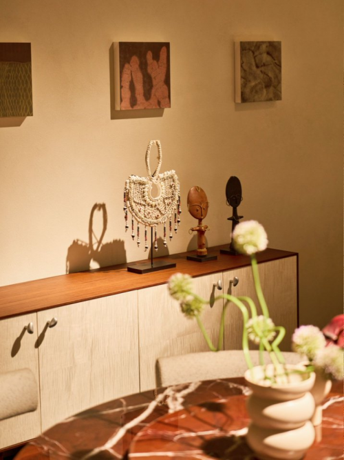 可纳当代系列产品以甄稀原材与坦荡设计,赋予岛屿内交错空间不设限的舒适感,映衬着当代艺术家的系列画作,与极具设计感的灯饰,重赋家居格调与情绪秩序,交织长久相伴的优雅与温情。