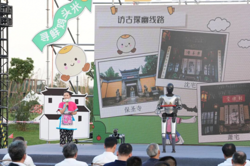 伴随魔法原子机器人“小麦”捧着新鲜鸡头米递予文旅推介官,涵盖访古探幽、品味人文、悠游慢城、探店优选等方面的特色线路正式揭开面纱,让亲子家庭、研学团队等在漫步中呼吸新鲜空气、领略“神州水乡第一镇”的田园意境。