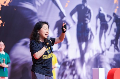 马校长在朝阳凯文千人蓑羽鹤勇气挑战赛上发言
