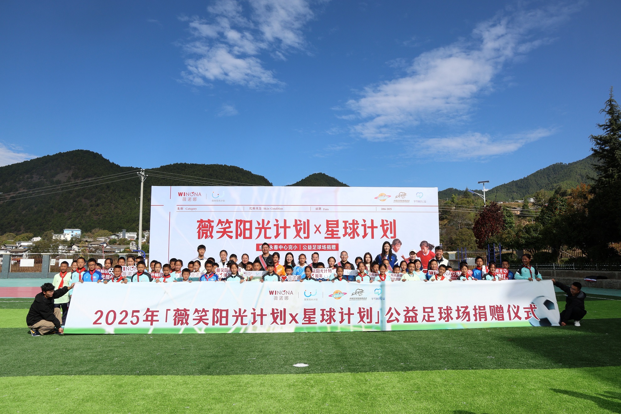 十周年之际,“薇笑阳光计划”联合“星球计划”在海拔2450米云南维西高原上建造专属足球场,助力当地孩子们在科学防晒的前提下自由、快乐地追求足球梦想。