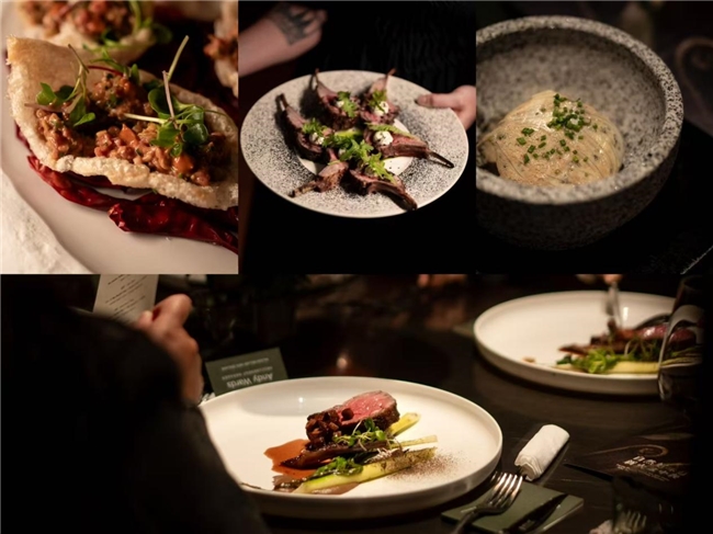 晚宴的料理环节由新西兰名厨 Ben Bayly主理。Ben Bayly以其位于奥克兰的三帽餐厅Ahi.的现代料理理念为基调,为当晚特别设计了一席一夜限定的定制菜单。他以新西兰优质牛羊肉为核心,巧妙融合中国本土时令食材,通过西式烹饪技法与中式风味哲学的对话,重新诠释"自然本味"的丰富内涵。